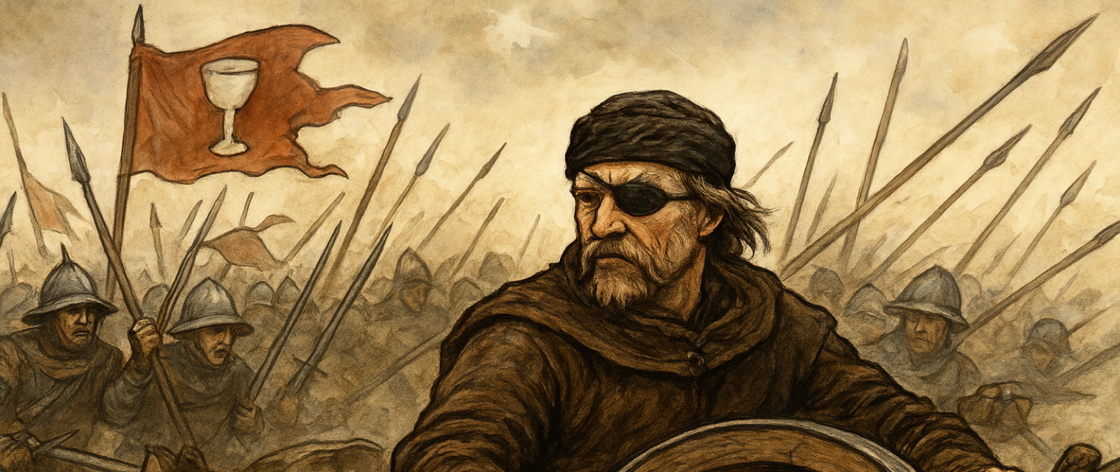 Nevidomý generál: I bez očí Žižka "viděl" bojiště díky poslechovým signálům (buben, trouby) a důvěře v podřízené.